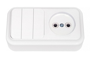 Блок розетка+выключатель двухклавишный О/У, С/З, белый, 2В-РЦ-529, Bylectrica, Пралеска, Беларусь