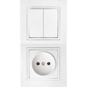 Блок розетка+выключатель двухклавишный О/У, С/З, белый, 2В-РЦ-529, Bylectrica, Пралеска, Беларусь