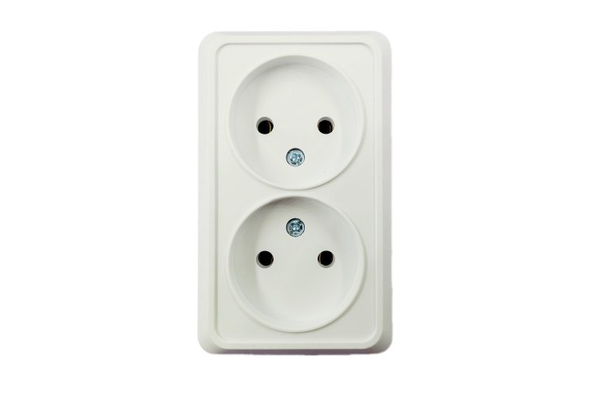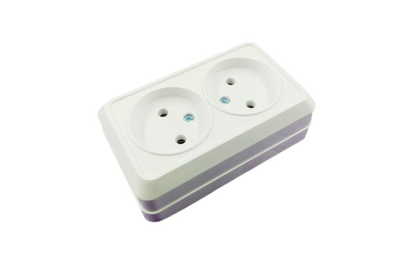 Розетка двухместная О/У, Б/З, белый, РА16-260, Bylectrica, Пралеска, Беларусь