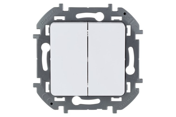 Выключатель двухклавишный С/У, белый, 10А, IP20, 250 Вт, Legrand Inspiria 673620