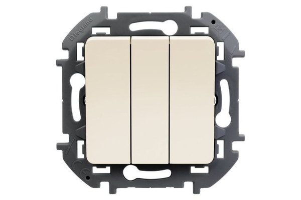 Выключатель трёхклавишный С/У, слоновая кость, 10А, IP20, 250 Вт, Legrand Inspiria 673641