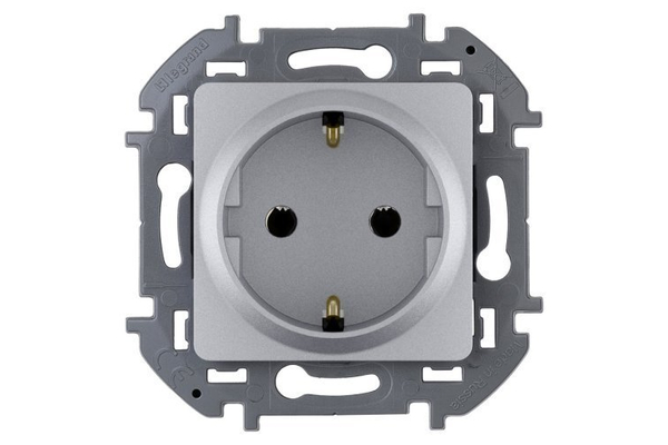 Розетка одноместная С/П, алюминий, 16А,2P+E немец.стандарт, IP20, 250 Вт, Legrand Inspiria 673722