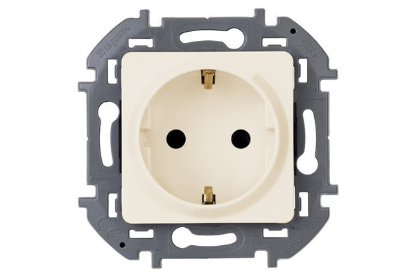 Розетка одноместная С/П, слоновая кость, 16А,2P+E немец.стандарт, IP20, 250 Вт, Legrand Inspiria 673721