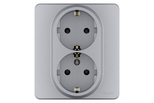 Розетка двухместная С/П, алюминий, 16А,2P+E немец.стандарт, IP20, 250 Вт, Legrand Inspiria 673752