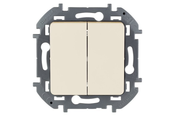 Выключатель двухклавишный С/У, слоновая кость, 10А, IP20, 250 Вт, Legrand Inspiria 673621