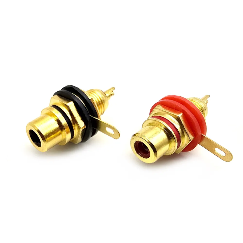 Гнездо RCA тюльпан на корпус, золото, красное/чёрное (64711)