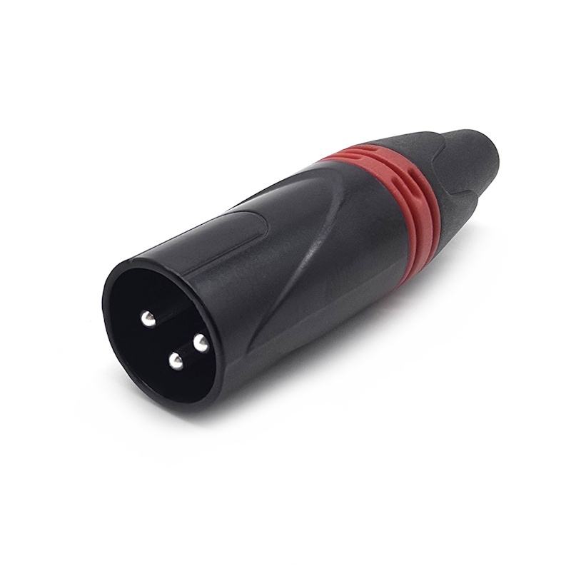 Разъем XLR 3pin штекер metal -nickel PROFF L-70mm, Ø -6.0mm, аналог NEUTRIK NC3MXX-BAG чёрный корпус, красная полоса