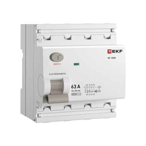 Выключатель авт. диф. тока 4п 63А 30mA тип АС 6kA ВД-100N PROxima ЭКФ E1046M6330