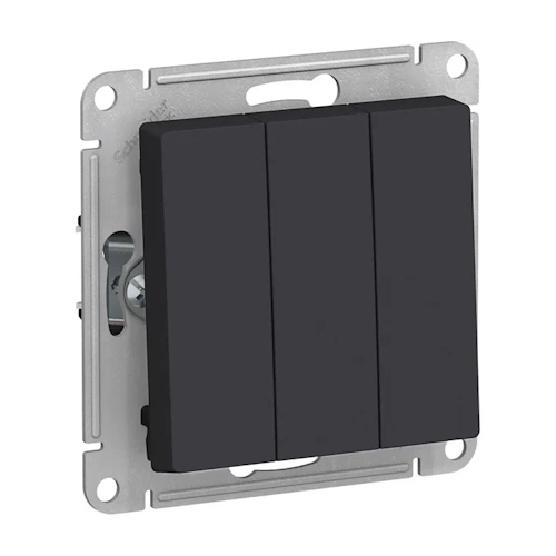 Выключатель трёхклавишный С/У, карбон, 10А, Schneider AtlasDesign ATN001031