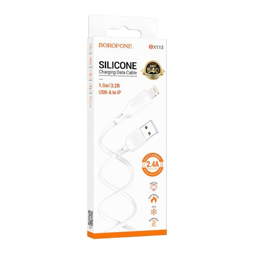 Кабель USB - Lightning Borofone BX113 Lenny, 1.0м, 2.4A, силикон, белый