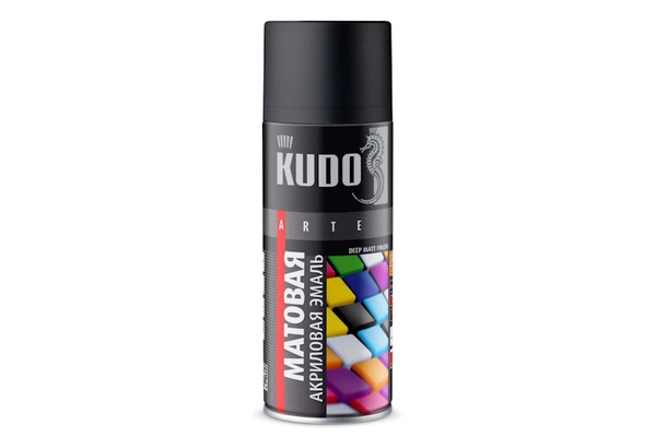 Краска-спрей (эмаль) универсальная, чёрная матовая, акриловая 520мл, аэрозоль, RAL9005, Kudo