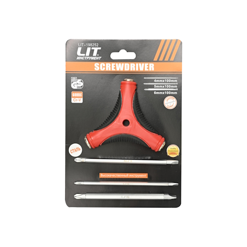 Набор отверток, рукоятка +3 двухстороние биты на 4,5,6мм "LIT" (1/120) (10013160/310123/3042207, Китай) /198252/