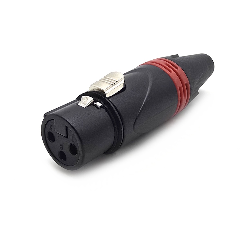 Разъем XLR 3pin гнездо metal -nickel PROFF L-73mm, Ø -6.0mm, аналог NEUTRIK NC3FXX-BAG чёрный корпус, красная полоса