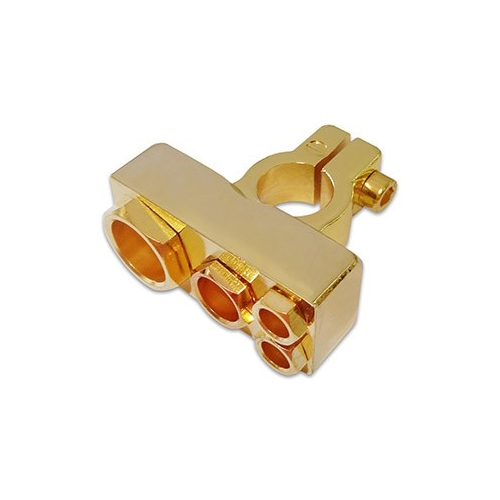 Клемма аккумуляторная "-" на 4 входа, с цанговым зажимом кабеля до 50мм2, позолоченная