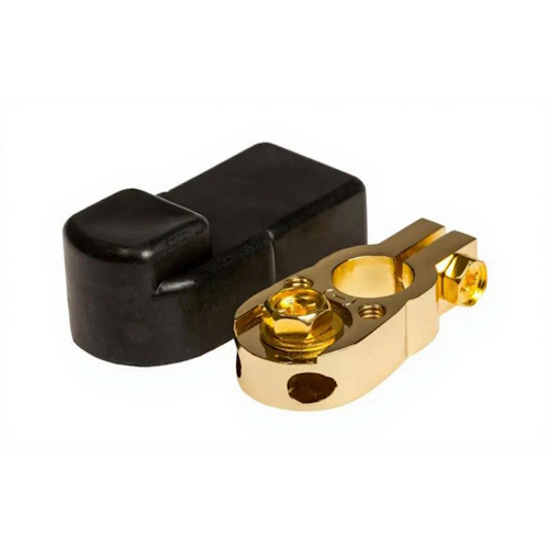 Клемма аккумуляторная "-" на 3 входа, малая, позолоченная, с чехлом