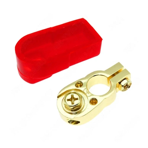 Клемма аккумуляторная "+" на 3 входа, малая, позолоченная, с чехлом