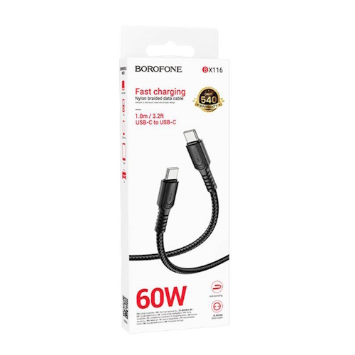 Кабель Type-C - Type-C Borofone BX111, 1м, 60W, чёрный