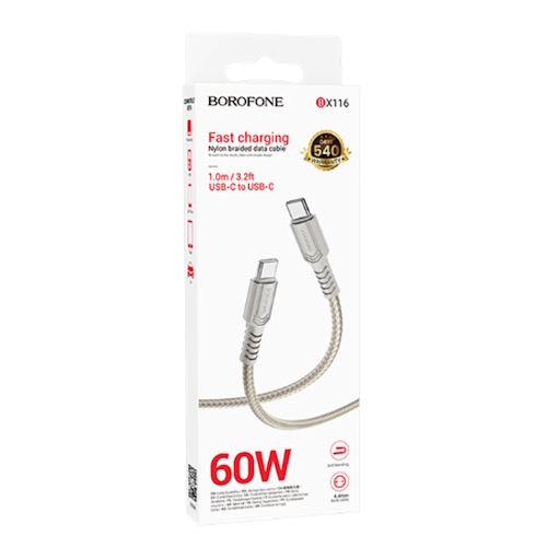 Кабель Type-C - Type-C Borofone BX116, 1м, 3.0A, серый