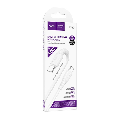 Кабель Type-C - Type-C HOCO X120, 1м, белый
