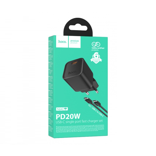 СЗУ на PD HOCO N64 PD20Вт + кабель Type-C - Type-C чёрный