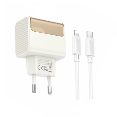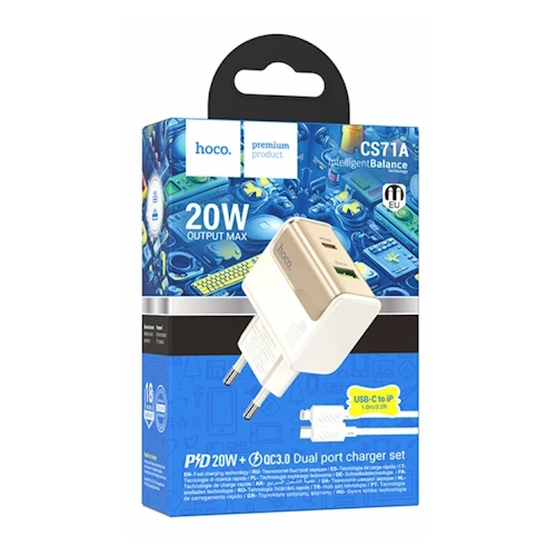 СЗУ на PD+USB (гнездо Type-C) HOCO CS71A, 20W, QC3.0 + кабель Type-C - Lightning, белый