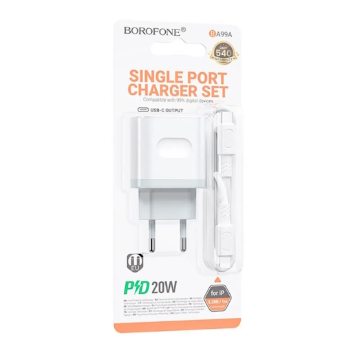 СЗУ на PD (гнездо Type-C) BOROFONE BA99A + кабель Type-C - Lightning, белый