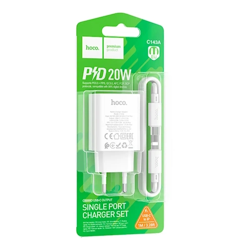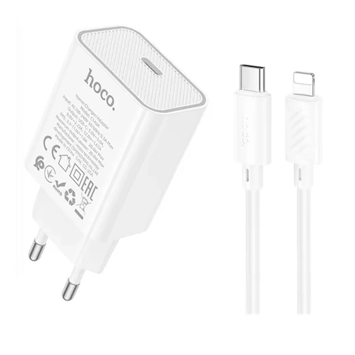 СЗУ на PD HOCO C143A PD20Вт + кабель Type-C - Lightning белый