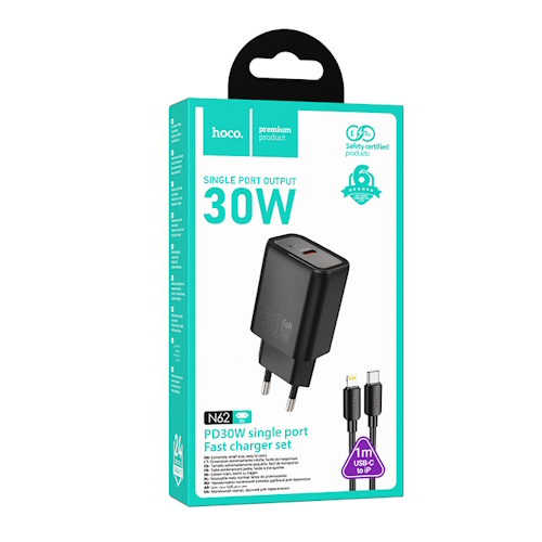 СЗУ на PD HOCO N62 QC3.0, PD30Вт + кабель Type-C - Lightning черный