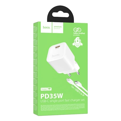 СЗУ на PD HOCO N66 QC3.0, PD35Вт + кабель Type-C - Lightning белый