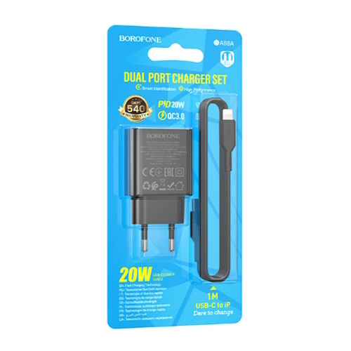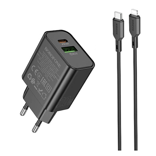 СЗУ на PD (гнездо Type-C) + USB BOROFONE BA88A, PD20ВТ, QC3.0A + кабель Type-C-Lightning, чёрный