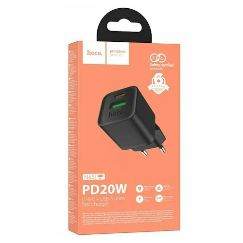 СЗУ на PD (гнездо Type-C) + USB HOCO N65, PD20ВТ, QC3.0A черный