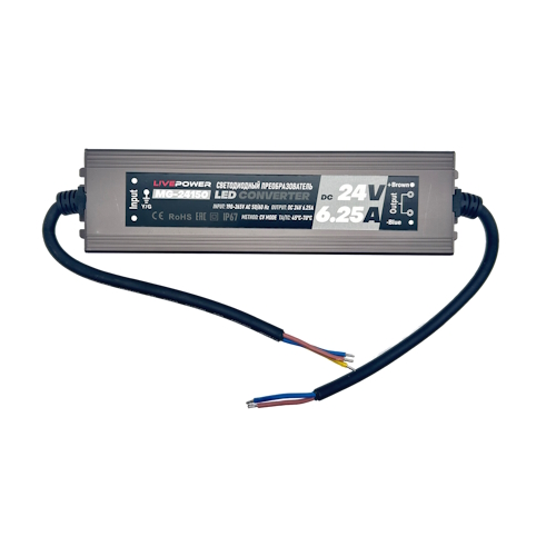 Блок питания для LED ленты 24V 150W 6.25A IP67 MG-24150