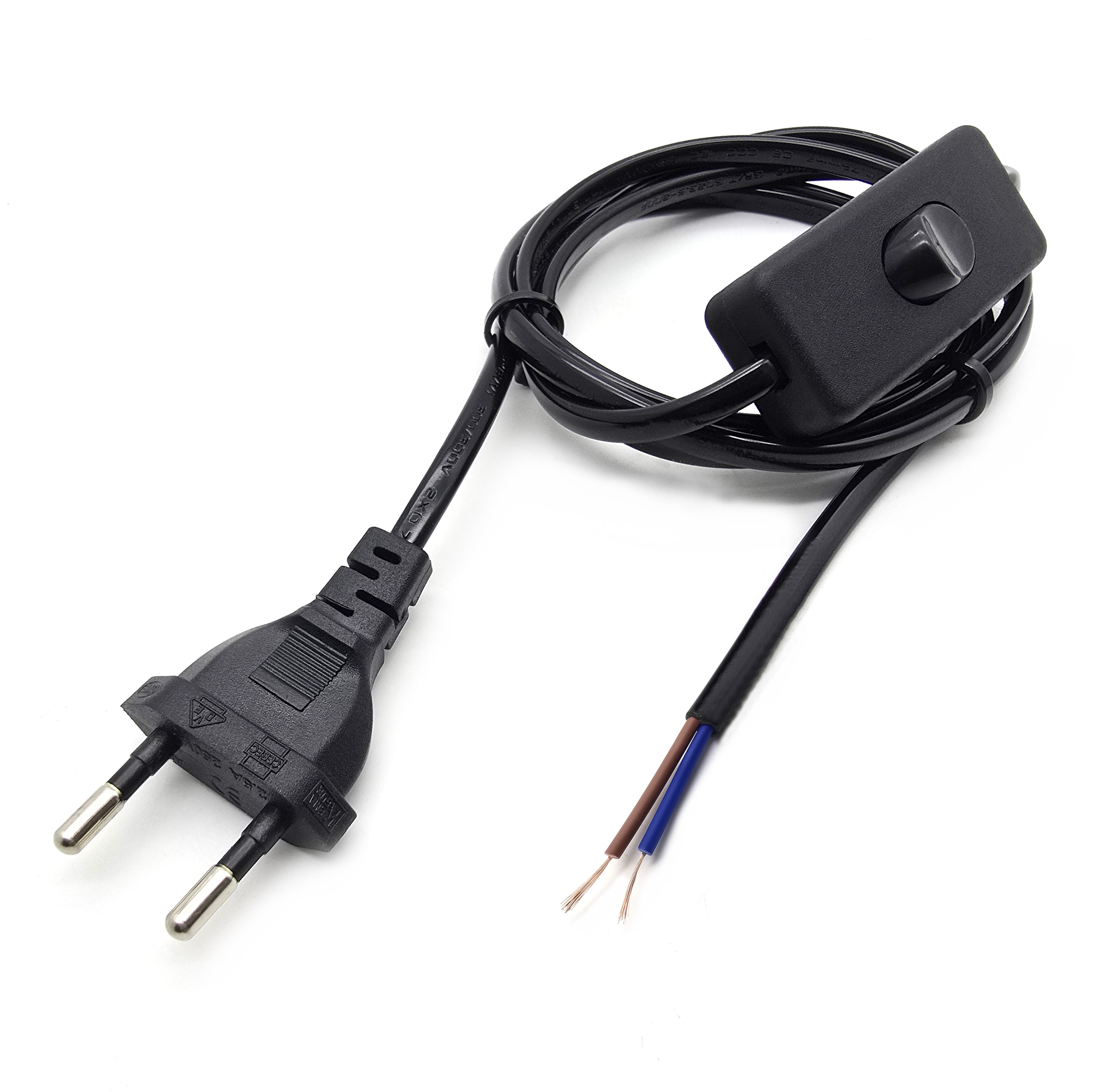 Шнур с плоской вилкой и проходным выключателем черный 1,5м