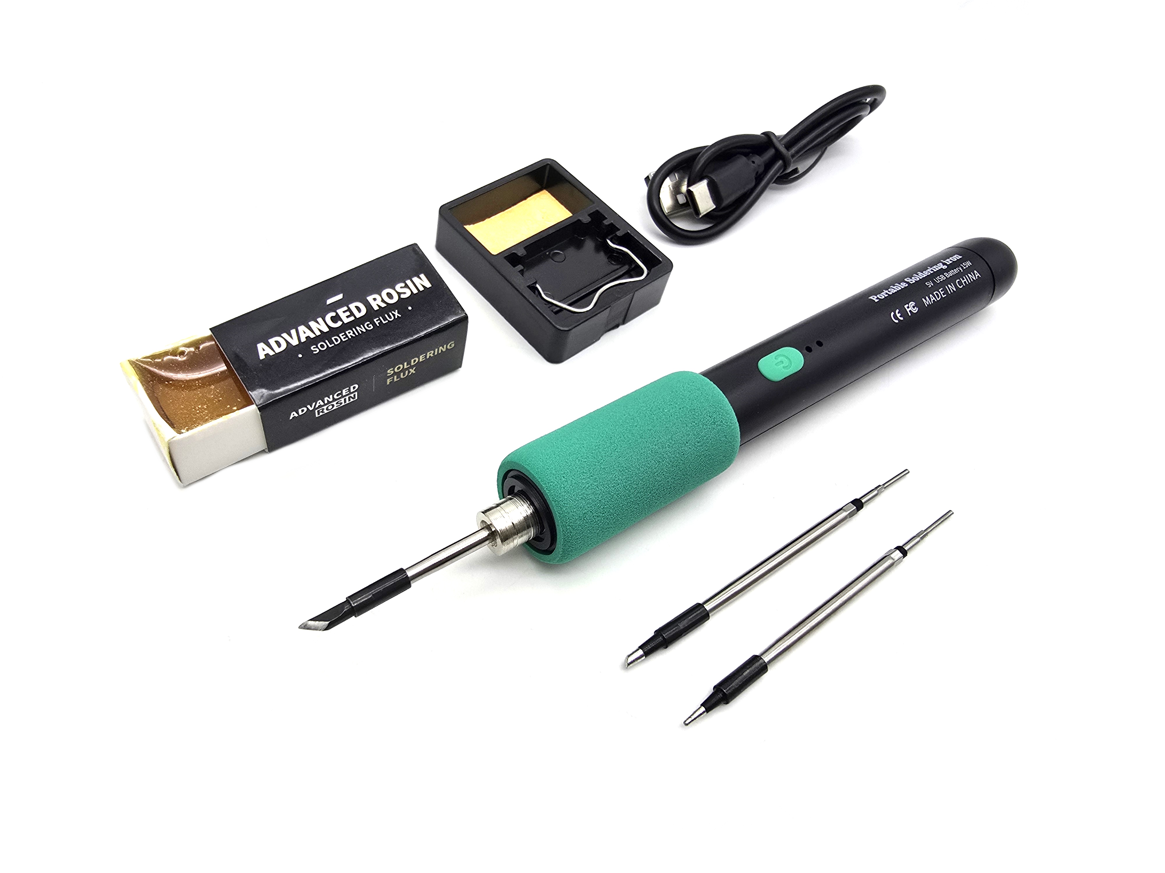 Паяльник USB 5В 8Вт, 18650 Li-Ion, портативный, комплект жал, флюс, припой, подставка