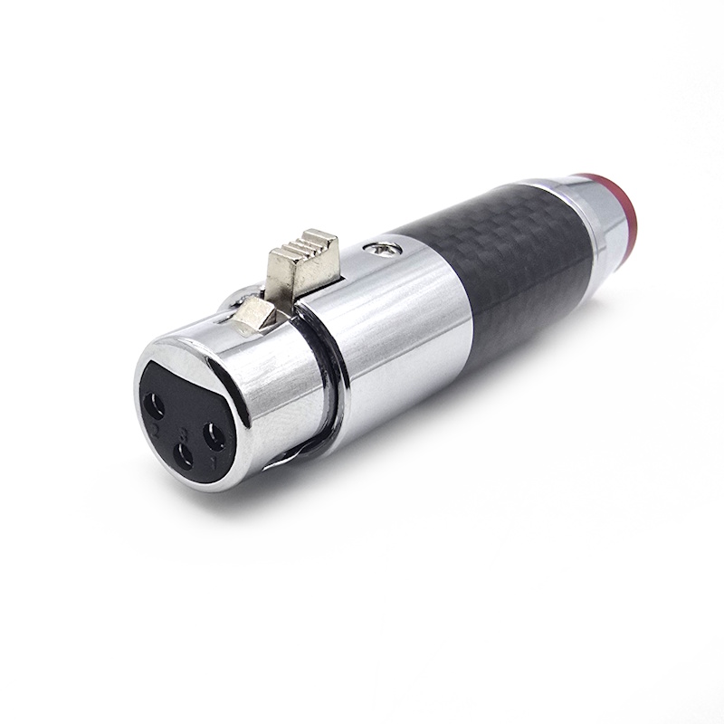 Разъем XLR 3PIN гнездо на кабель, карбон, красная полоса, Dвх - 10мм