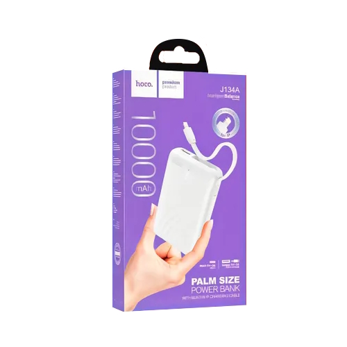Внешний аккумулятор HOCO 10000mAh, J134A, USB, кабель Lightning белый
