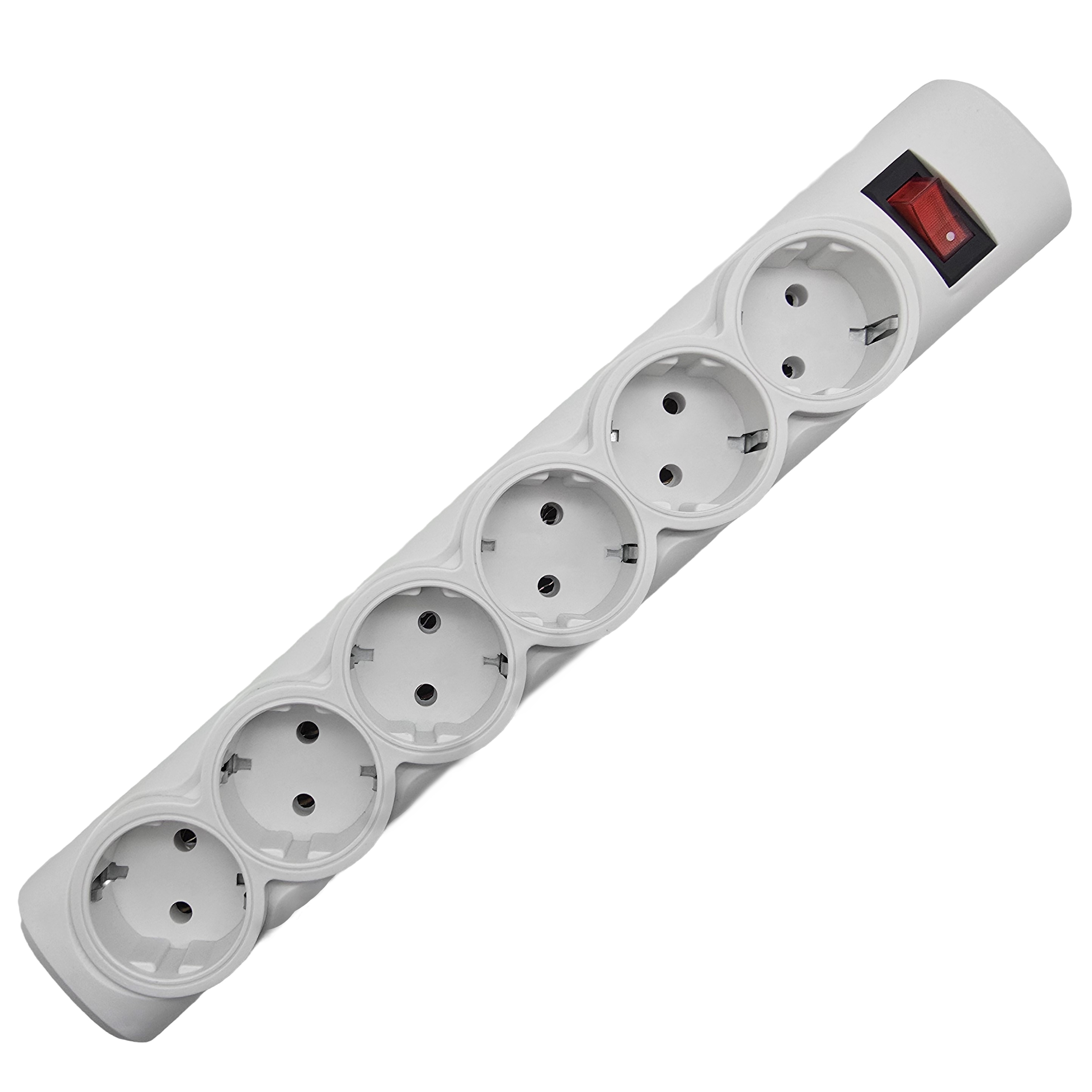 Колодка удлинителя 6 гнезда с/з, с кнопкой, белая