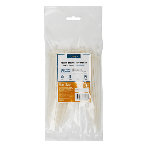 Стяжка нейлон (хомут) 3,6*150мм (белый) (100шт/уп) DYNEL DY-03-02-002