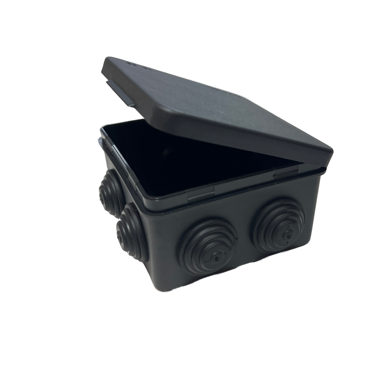 Коробка распределительная 80*80*50 с откидной крышкой ОУ черная IP54 DYNEL DY-04-02-105