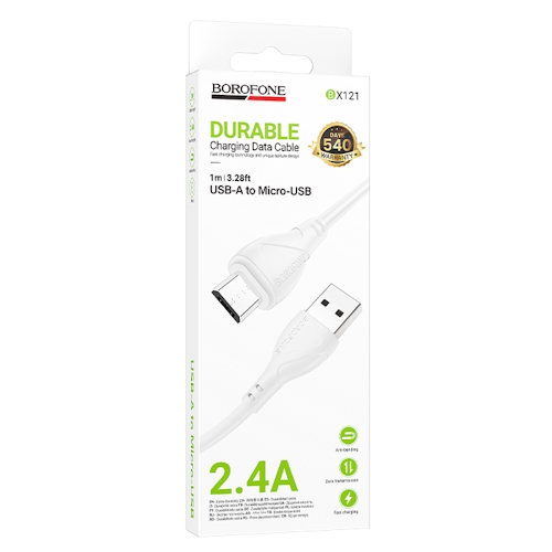 Кабель USB - MicroUSB Borofone BX121, 1м, белый