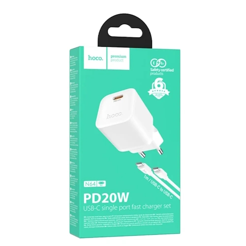 СЗУ на PD HOCO N64 PD20Вт + кабель Type-C - Type-C белый