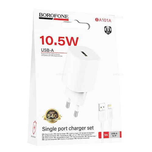 СЗУ на USB BOROFONE BA101A + кабель Lightning, белый