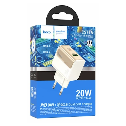 СЗУ на PD+USB (гнездо Type-C) HOCO CS71A, 20W, QC3.0, белый