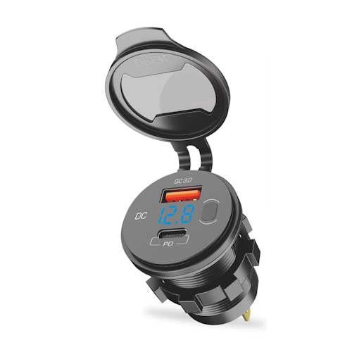 Разъем Usb в авто (врезные) 12V-24V 2USB ES06 (Круглый) QC3.0 + PD30W + Вольтметр