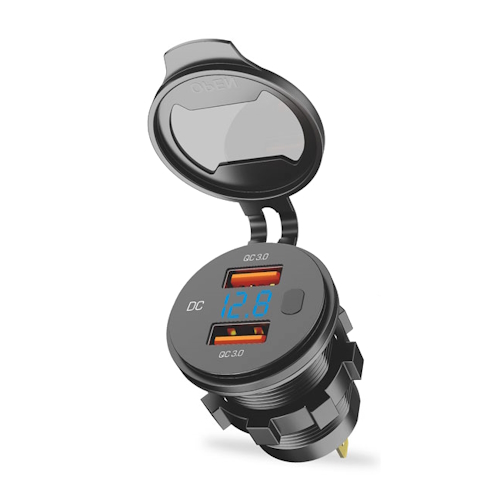 Разъем USB в авто (врезные) 12V-24V 2USB ES07 (Круглый) QC3.0 + QC3.0 + Вольтметр