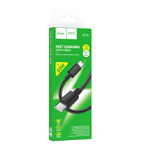 Кабель Type-C - Type-C HOCO X119, 1м, 3.0A,ткань, чёрный