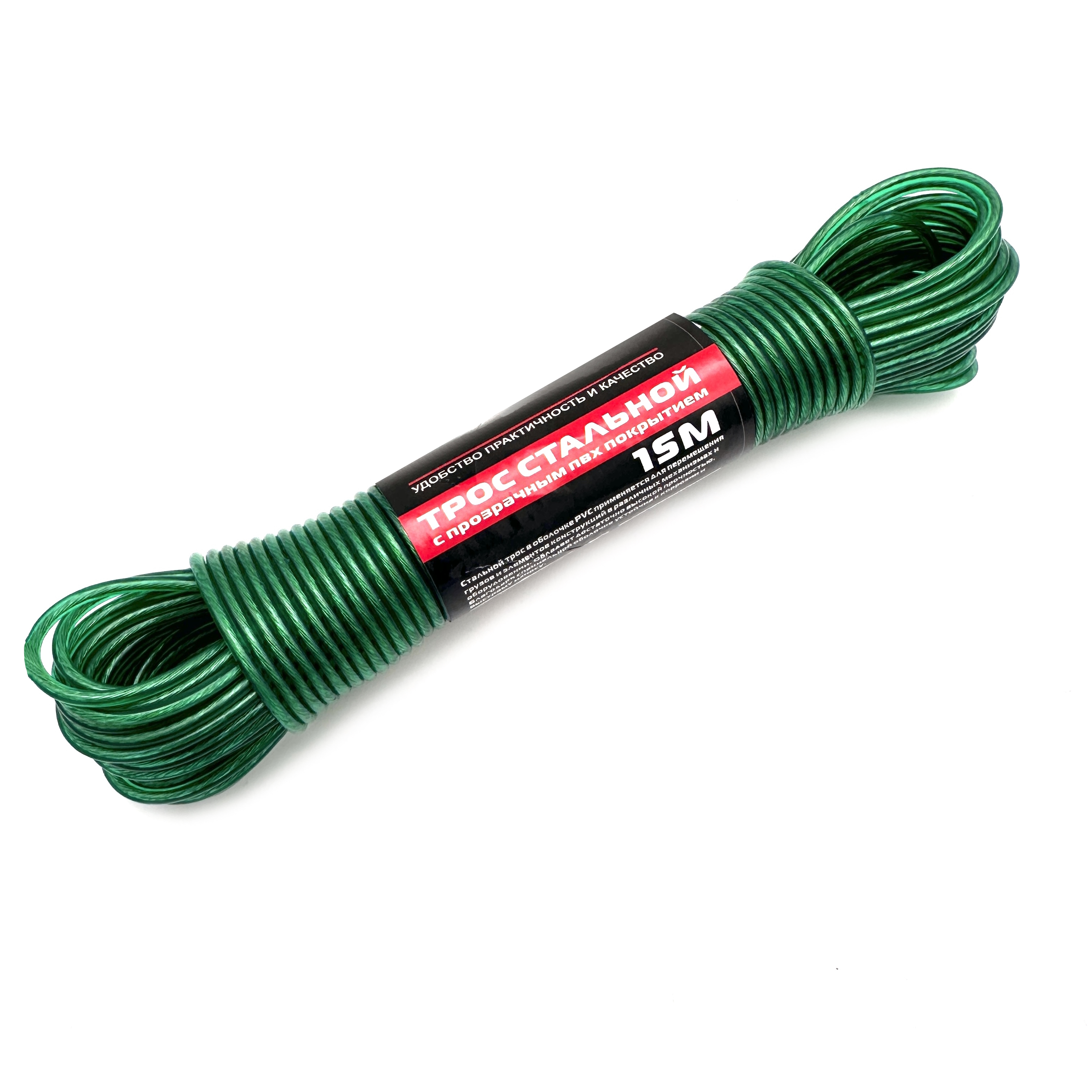 Трос композитный, металлический с прозрачным ПВХ покрытием 15м X-PERT