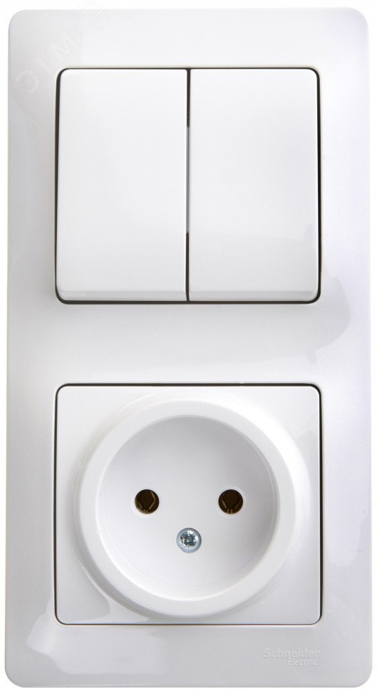 Блок вертикальный розетка+выключатель 2-клавишный белый С/У, Б/З Systeme Electric GLOSSA