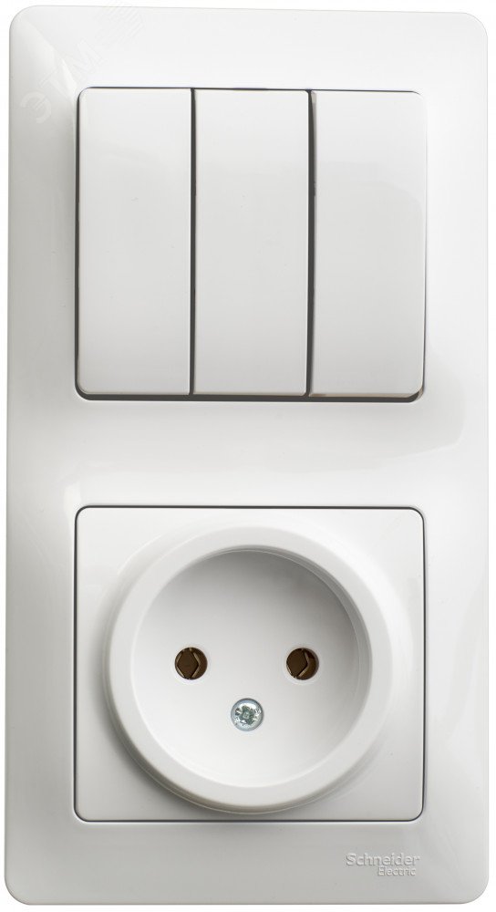 Блок вертикальный розетка+выключатель 3-клавишный белый С/У, Б/З Systeme Electric GLOSSA