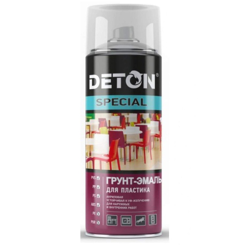 Грунт-эмаль аэрозоль, для пластика, серый, 520 мл, Deton Spesial